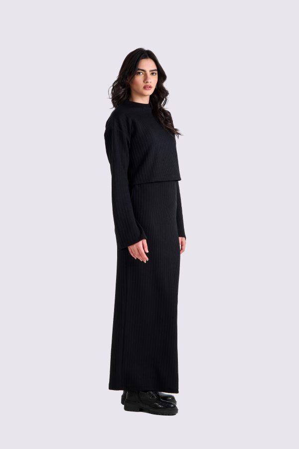 Black Knitted maxi skirt with a high slit from the back