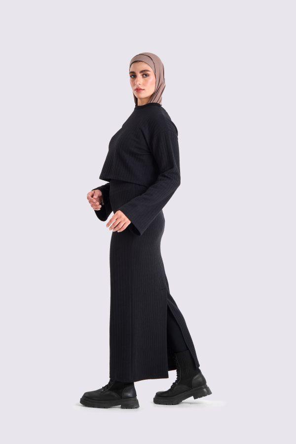 - The Hijab House Black Knitted Crop Top is a chic and versatile piece that combines contemporary style with timeless comfort. Made from soft, high-quality knit fabric, this crop top offers a sleek, fitted silhouette that complements any outfit. The minimalist black design makes it a wardrobe essential, perfect for layering over the Maxi Skirt. Lightweight yet cozy, it transitions effortlessly between seasons. Whether worn casually or dressed up, this crop top is the perfect blend of elegance and versatility.
