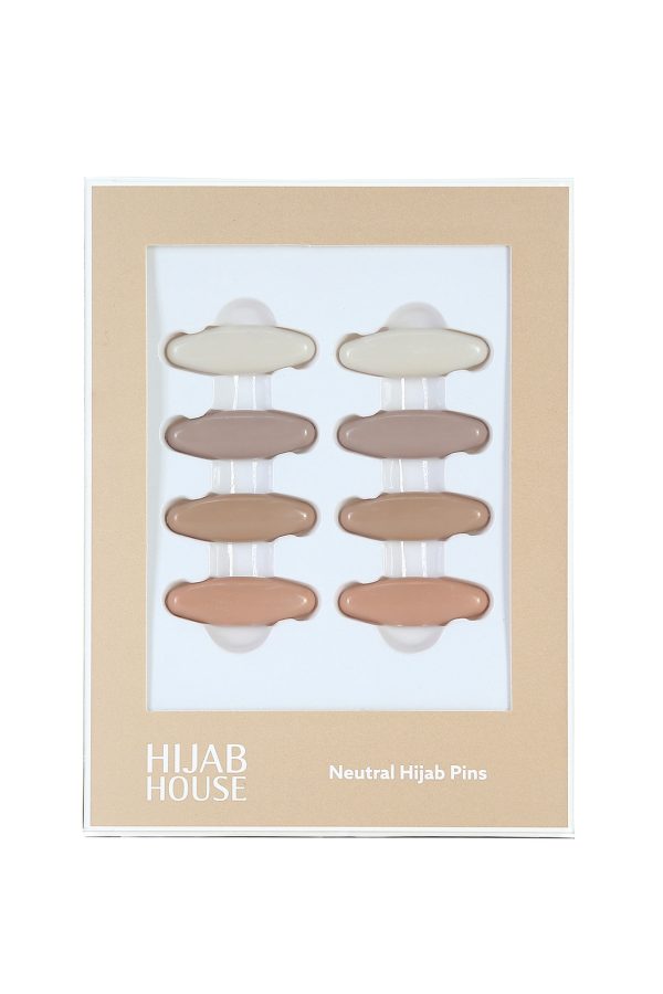 Pack of 8 neutral hijab pins designed to match neutral hijabs. High quality reinforced pin base.