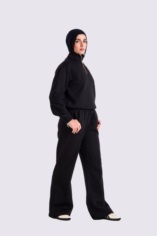 Cropped sweatshirt with a zipper from the front that has leather front the 2 sides Stay cozy and chic with the Hijab House Polar Fleece Pullover, a perfect blend of comfort and contemporary style. This cropped sweatshirt is crafted from soft, insulating polar fleece, making it ideal for cooler days. Designed with a modern twist, it features a front zipper for versatility and leather accents on both sides, adding a touch of edgy sophistication. The cropped silhouette offers a trendy vibe, perfect for layering over high-waisted pants or pairing with a flowy skirt for a balanced modest look. Reflecting Hijab House’s dedication to blending fashion with functionality, this pullover is a stylish and practical choice for your wardrobe, seamlessly combining warmth and elegance.
