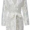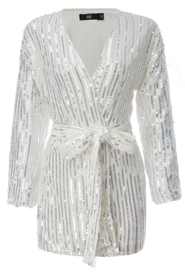 Gorgeous mid length cardigan made from white and grey sequined fabric and waist belt. Made to match sequined trousers. Non-sheer.